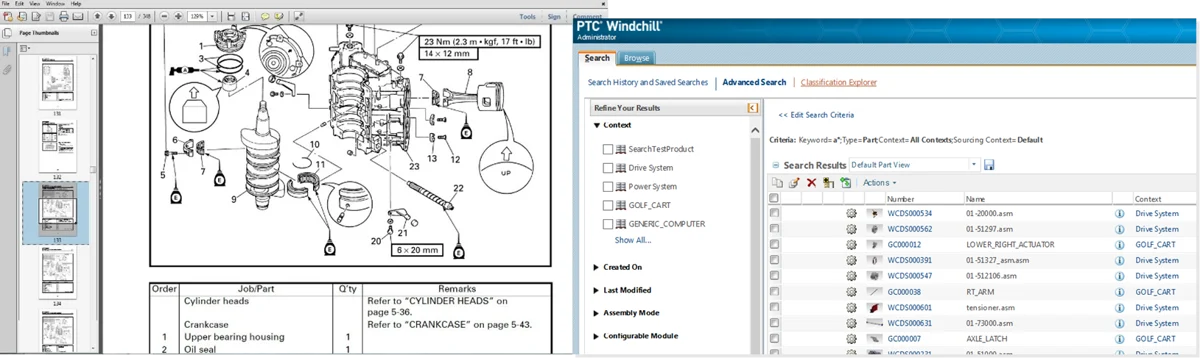 さらにPTC社のWindchill PLMと完全に統合されたサービスシステムは、これらの情報をすべてWindchill内に
