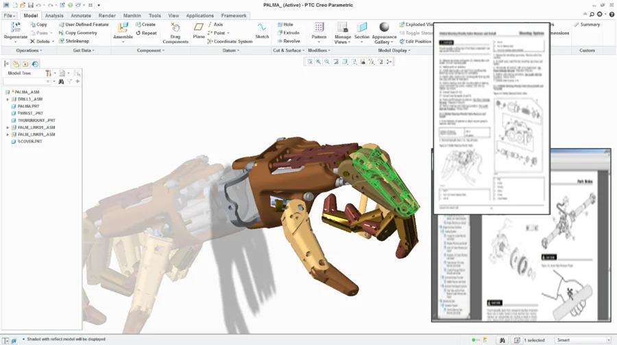 Creo Illustrate は、CAD データを再利用して複雑なサービス情報を簡単かつ正確に 伝達できる、アニメーション効果の付いた対話…
