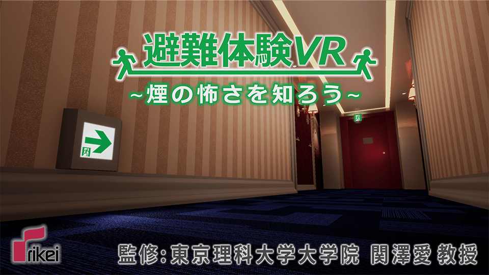 ワイヤレス・スタンドアロン型VRヘッドセットを利用して、火災が発生し黒煙が充満する建物内から、実際に歩いて、しゃがんで避難する体験をVR上で…